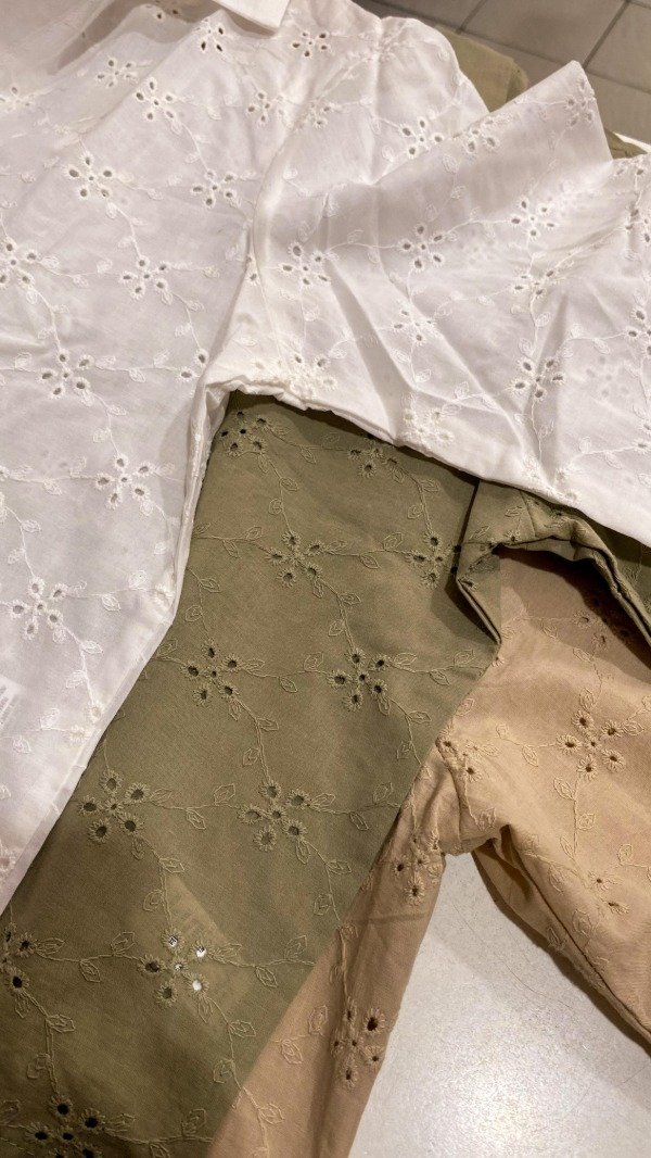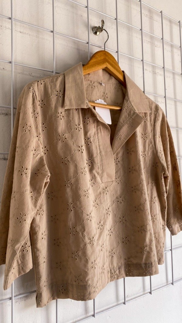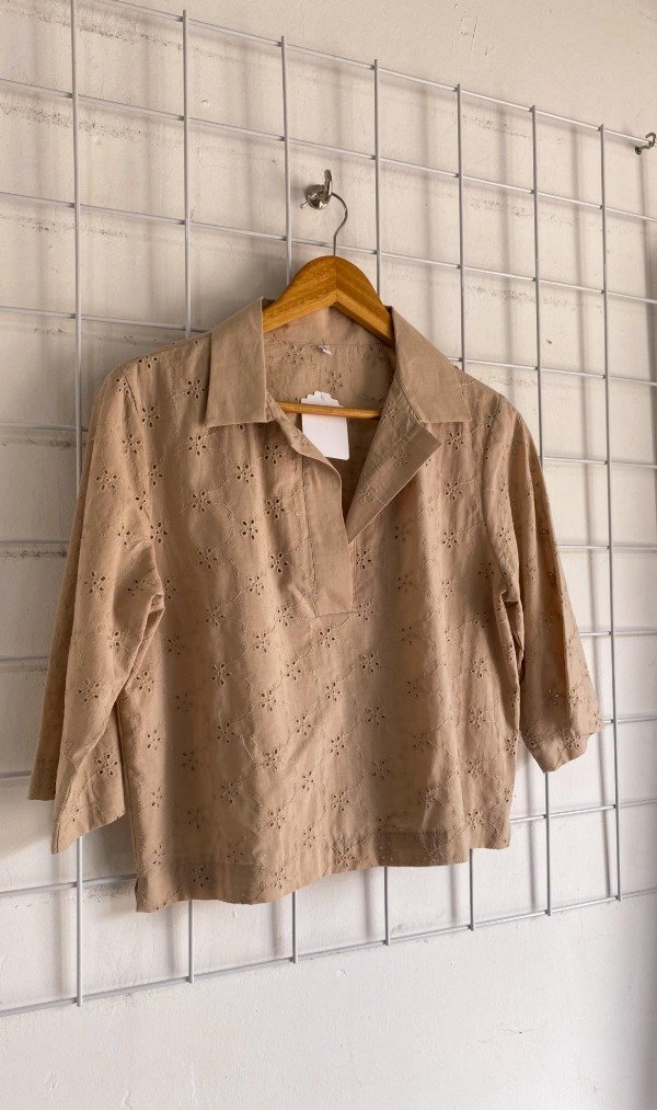 Blusa con cuello tipo camisa de broderié.