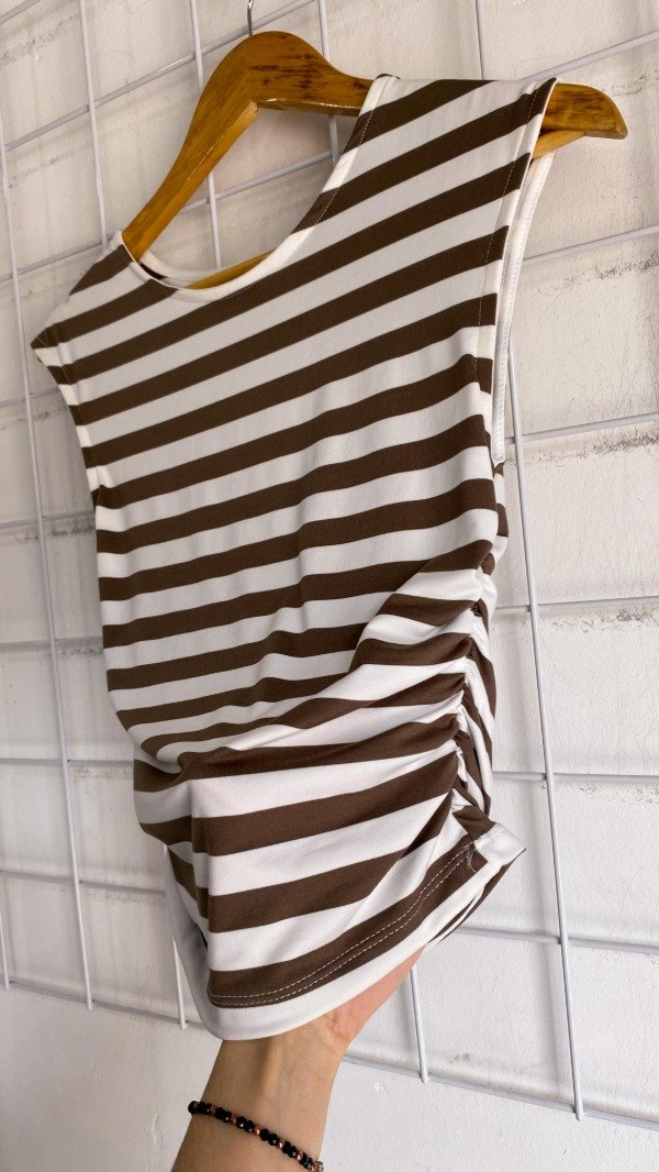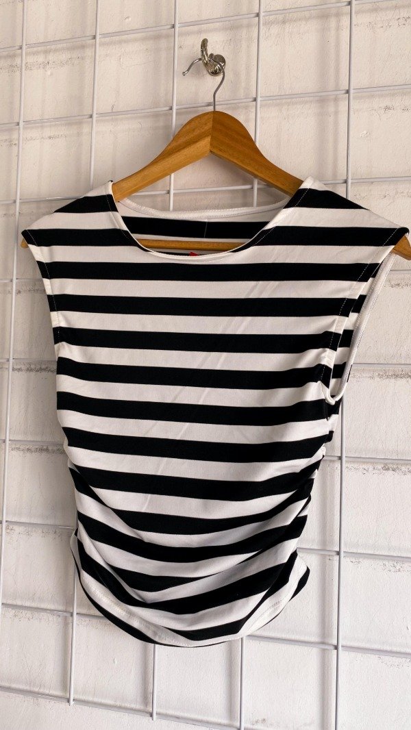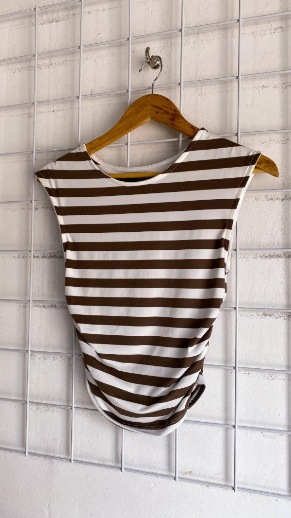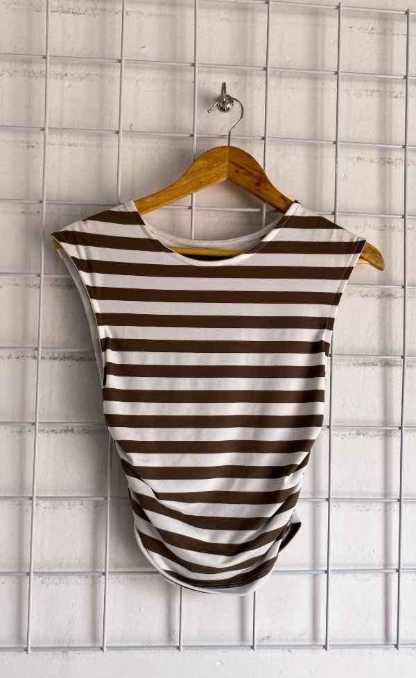 Remera sin manga de modal soft rayada. Tiene un detalle de frunce en el costado.