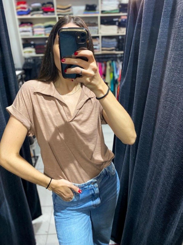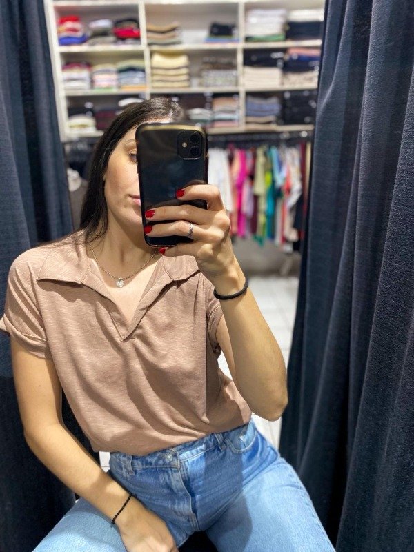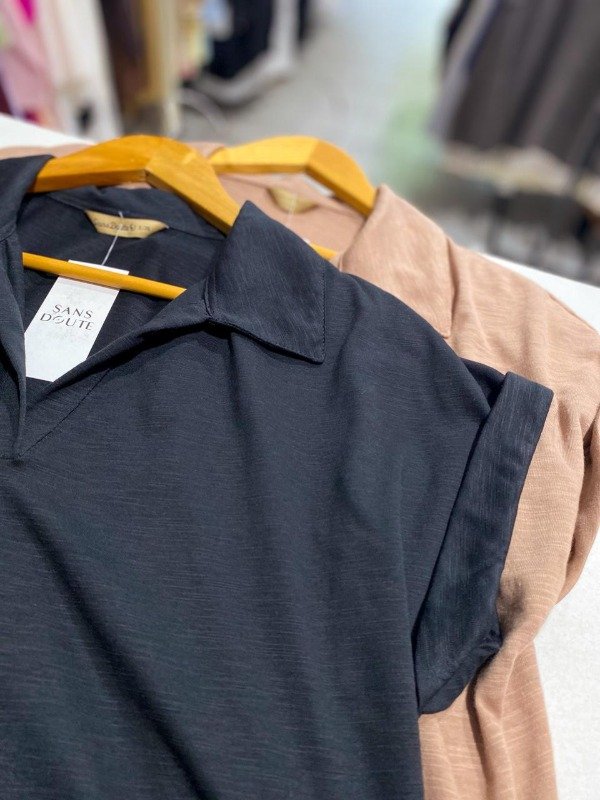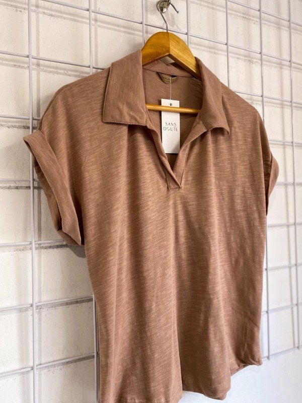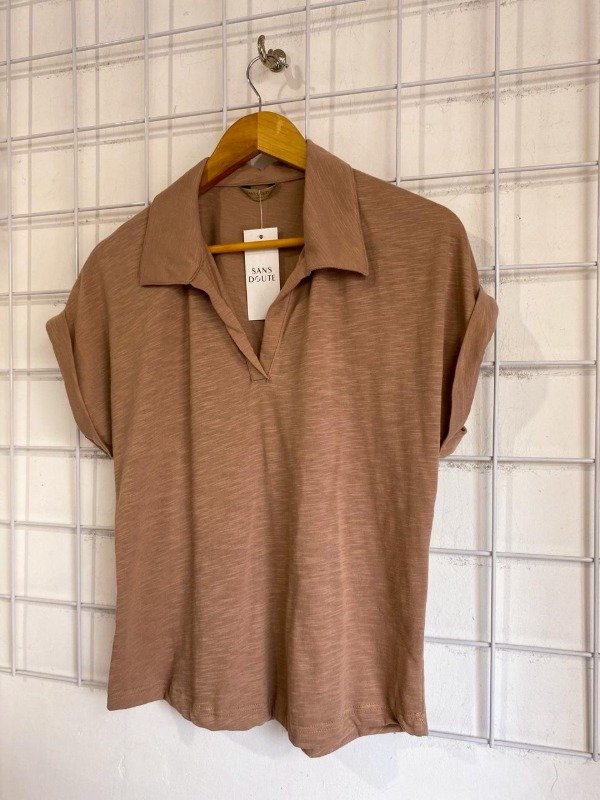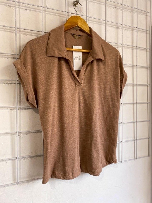 Remera cuello polo, de algodón flameé.- manga corta.