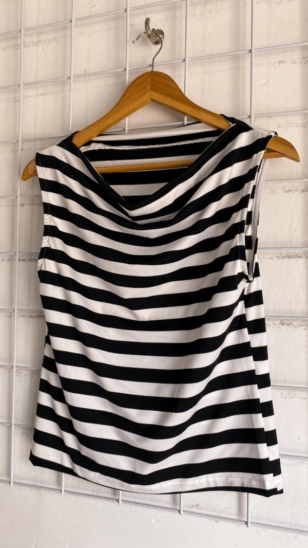 Remera sin manga de modal soft rayada - con cuello buche.