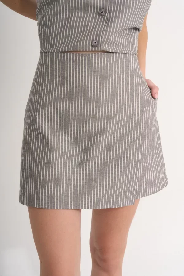 Pollera short de lino con elástico en la cintura.