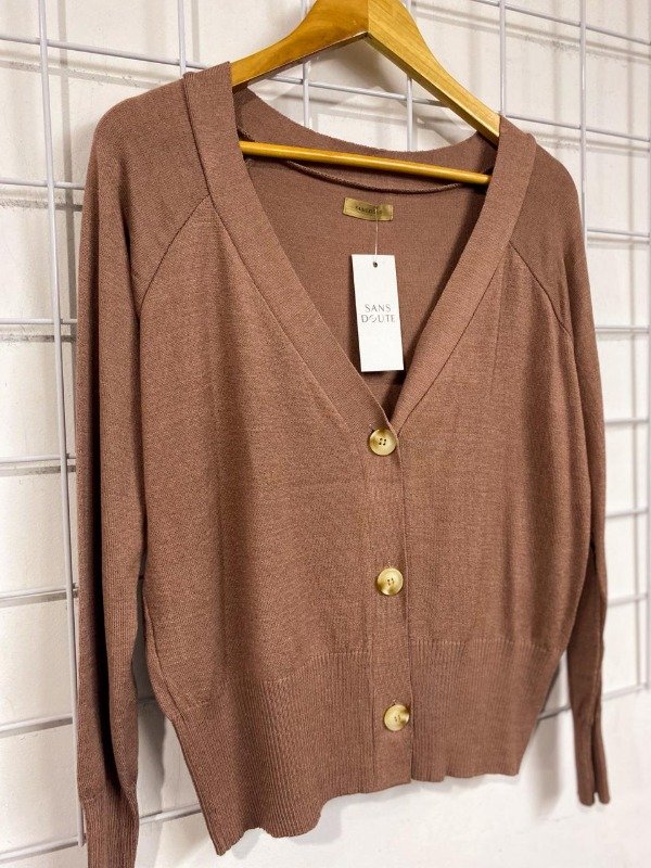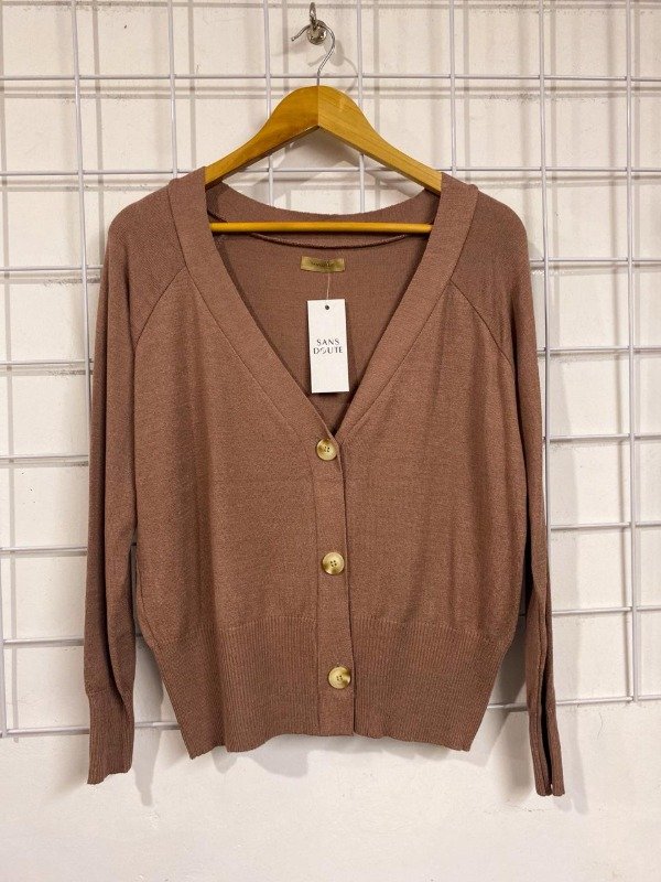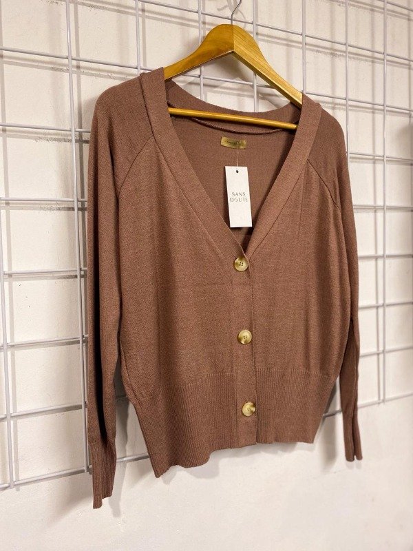 Cárdigan básico corto con botones. Tejido liviano.