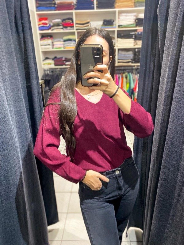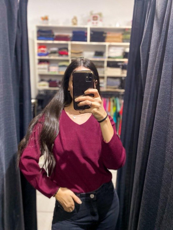 Sweater básico cuello V - tejido tipo bremer. Modelo talle único.